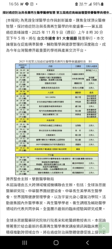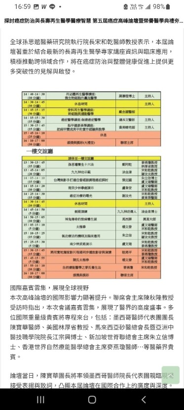 探討癌症防治與長壽再生醫學醫療智慧 第五屆癌症高峰論壇暨榮譽醫學典禮夯 https://metanews.topo.com.tw/168-374/https://metanews.topo.com.tw/168-374/
