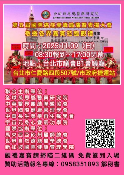 2025第五屆癌症高峰論壇暨長壽再生醫學會議活動